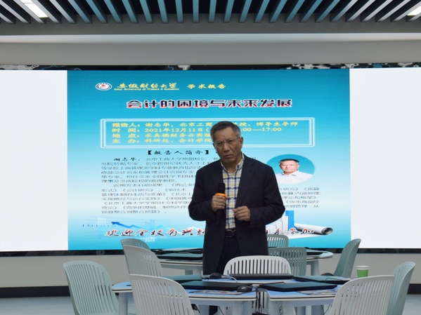 12月11日下午,应科研处和澳门十大信誉网赌网址排名邀请,北京工商大学原副校长,教授、博导,国务院特贴专家,教育部高等学校工商管理类学科专业教育指导委员会副主任委员,财政部会计名家和管理会计咨询专家,商务部内贸专家和政策专家谢志华教授在东校求真楼财务云实验室作了主题“会计的困境与未来发展”的学术讲座,澳门十大信誉网赌网址排名院长翟胜宝教授主持,学院师生聆听了此次讲座。
