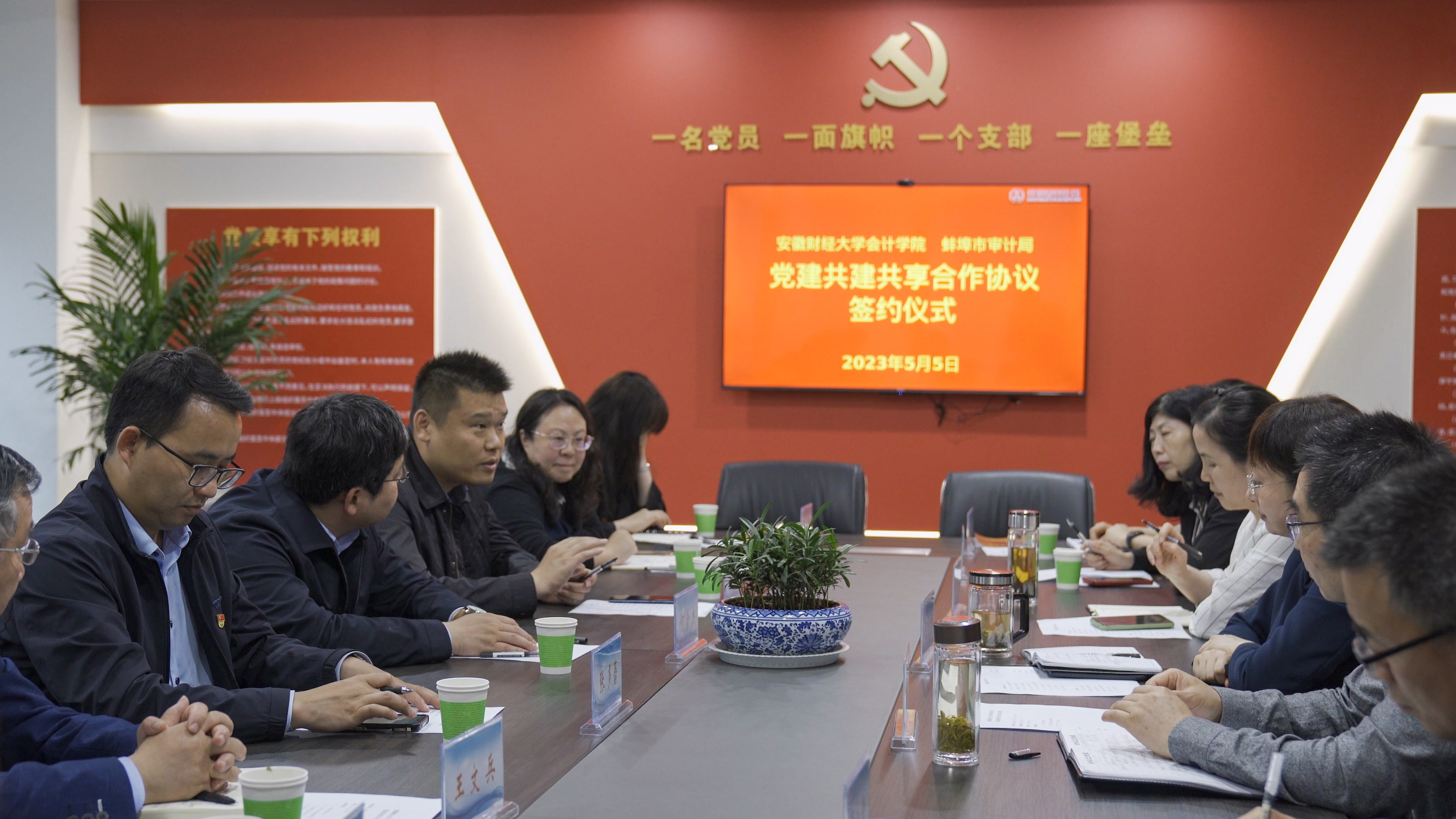 何贤杰从澳门十大信誉网赌网址排名审计学专业及学科建设、师资建设、人才培养、社会服务、就业创业等方面介绍了学校和学院的基本情况,希望在高水平审计人才共享、审计专业智库和实习基地建设、师生挂职锻炼和实习实践、科学研究、社会服务、大学生就业创业及志愿服务等方面与蚌埠市审计局开展深入合作,相互发挥优势互助,突出需求导向、效果导向,积极融入蚌埠市审计事业,助力蚌埠市经济社会建设发展。谢德刚希望双方充分发挥双方在人才、阵地、品牌、服务等方面的优势,以党建工作为引领、以共建为基础,以合作共享为目标,创新党建活动载体,丰富党建活动内容,增强机关党建工作实效,深入推进党建引领高质量发展。同时对共建内容以及工作安排作了简要介绍。毛大忠系统介绍了审计局在加强组织建设、强化党建融合、加强党务干部培养以及打造审计护航品牌等方面的特色做法,希望与澳门十大信誉网赌网址排名党建工作优势互补、互带互动,实现“组织共建、人才共育、资源共享、发展共谋、成果共创”的合作目标。会上,谢德刚和吴根献签署双方党建共建协议。